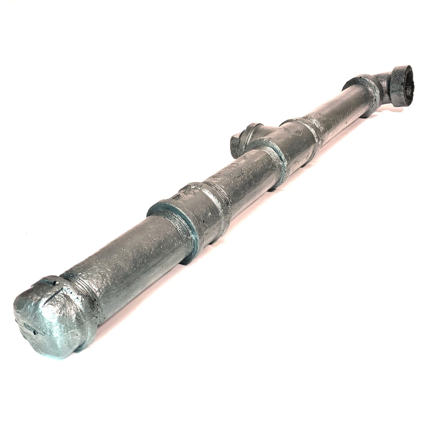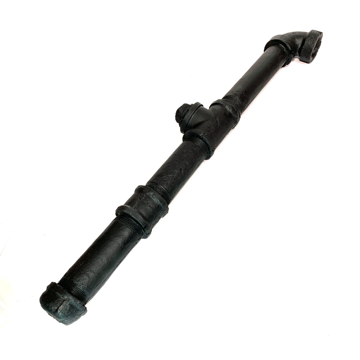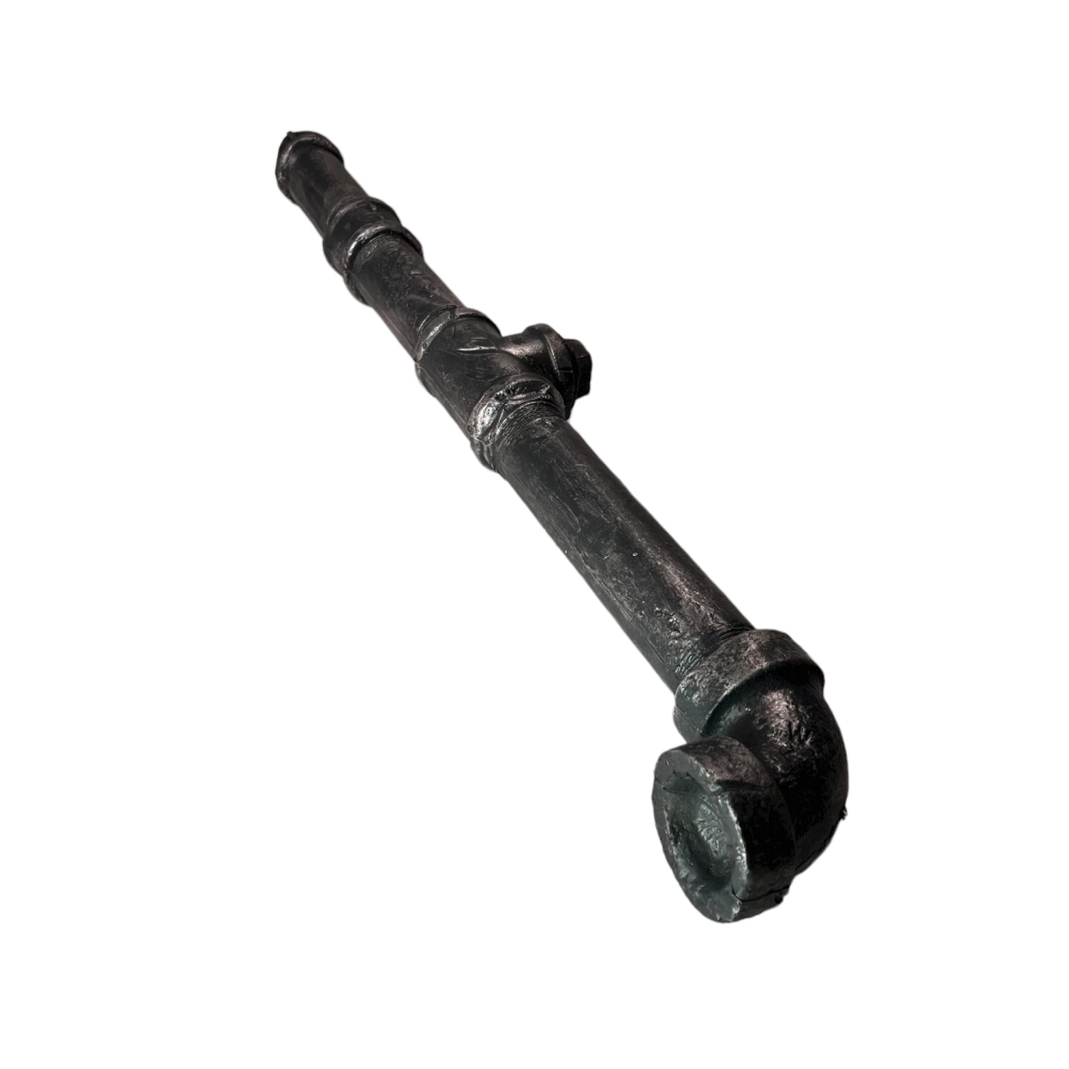 Made from a dense, flexible urethane foam, this rubber pipe prop is very substantial and can take a beating! Features great details of end caps, and drain plug. This prop is all one solid piece.