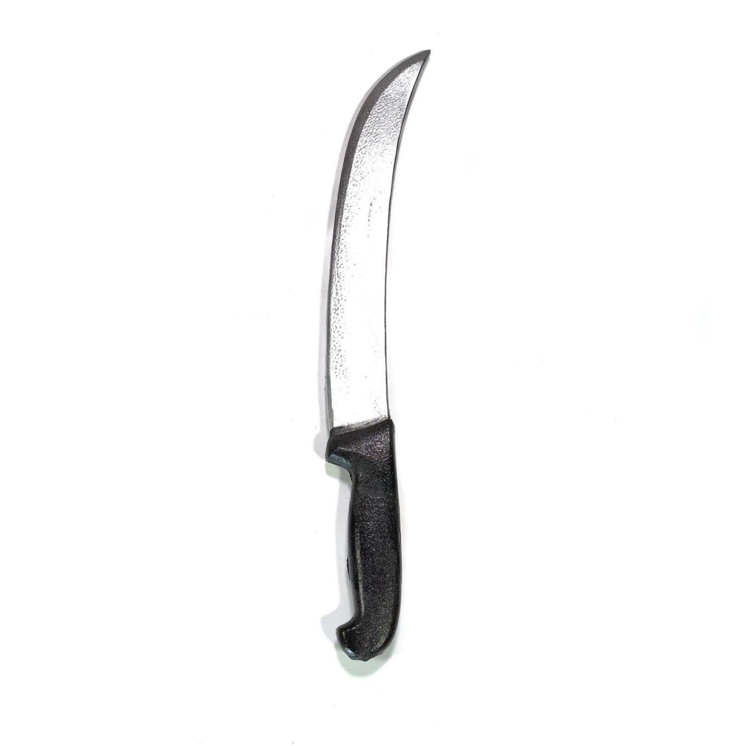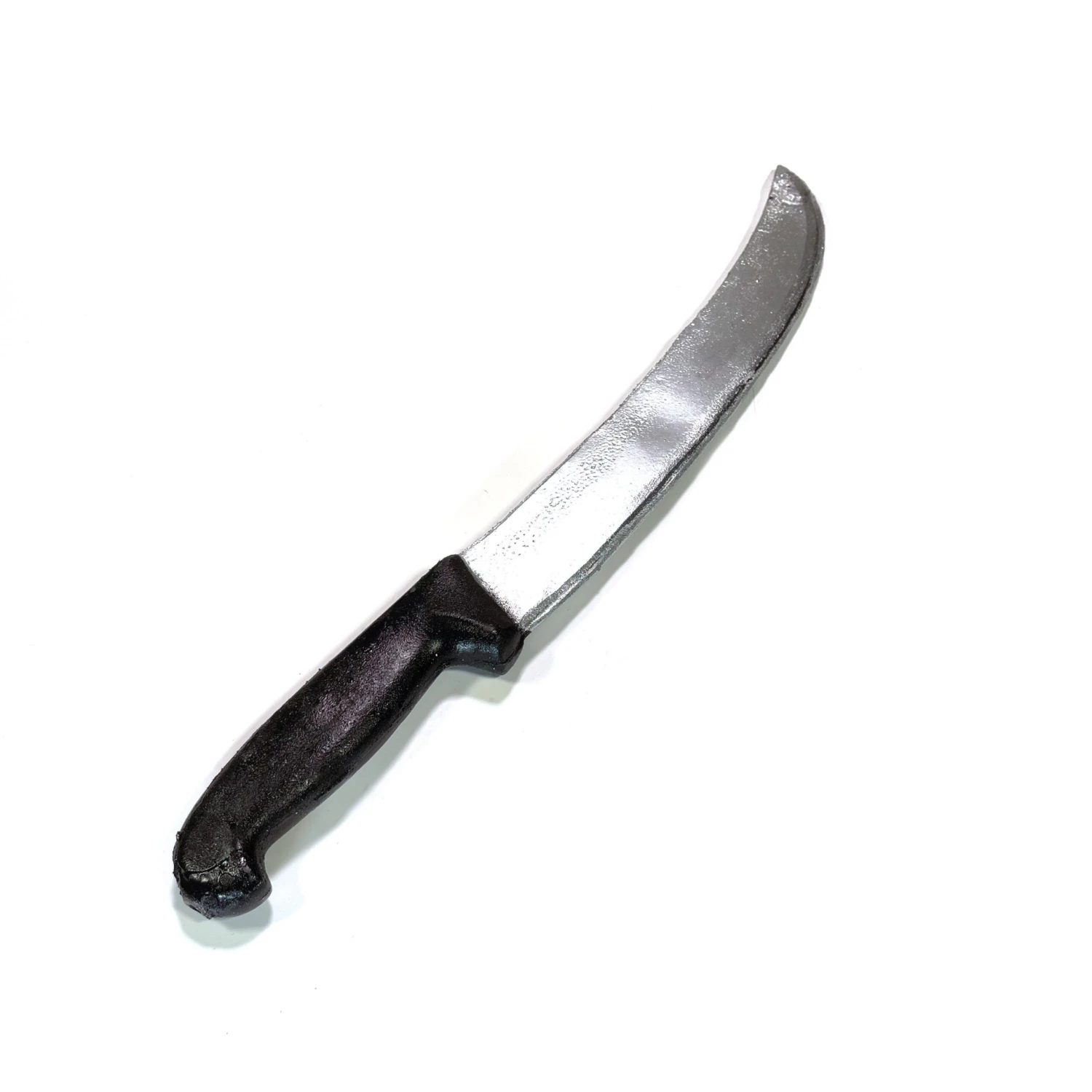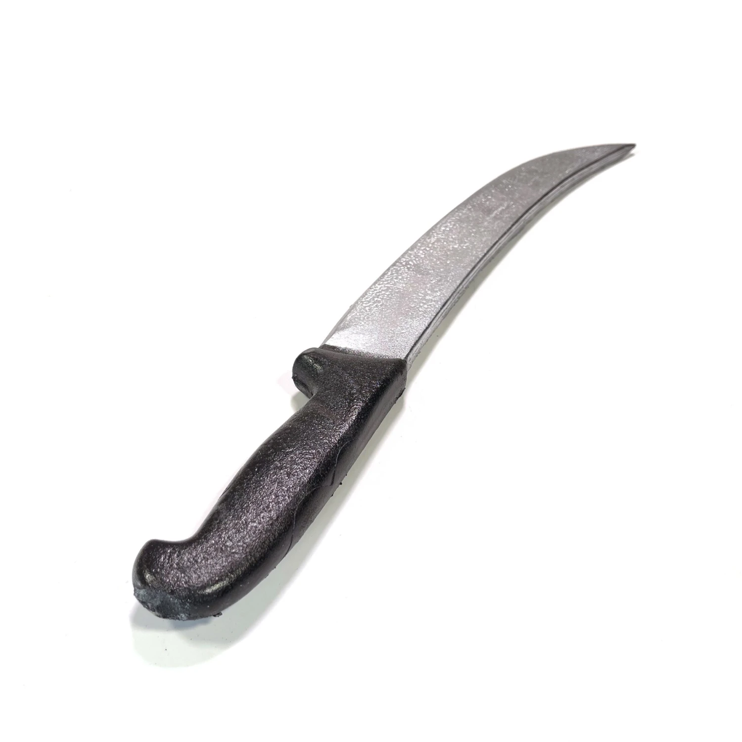 Our foam version of the Scimitar Butcher knife is perfect for all of your horror action scenes! The blade is painted silver and the handle painted black. Made from foam rubber urethane, it is soft and actor safe. This knife is available in three style options; new, rusty and over course our favorite – Bloody!