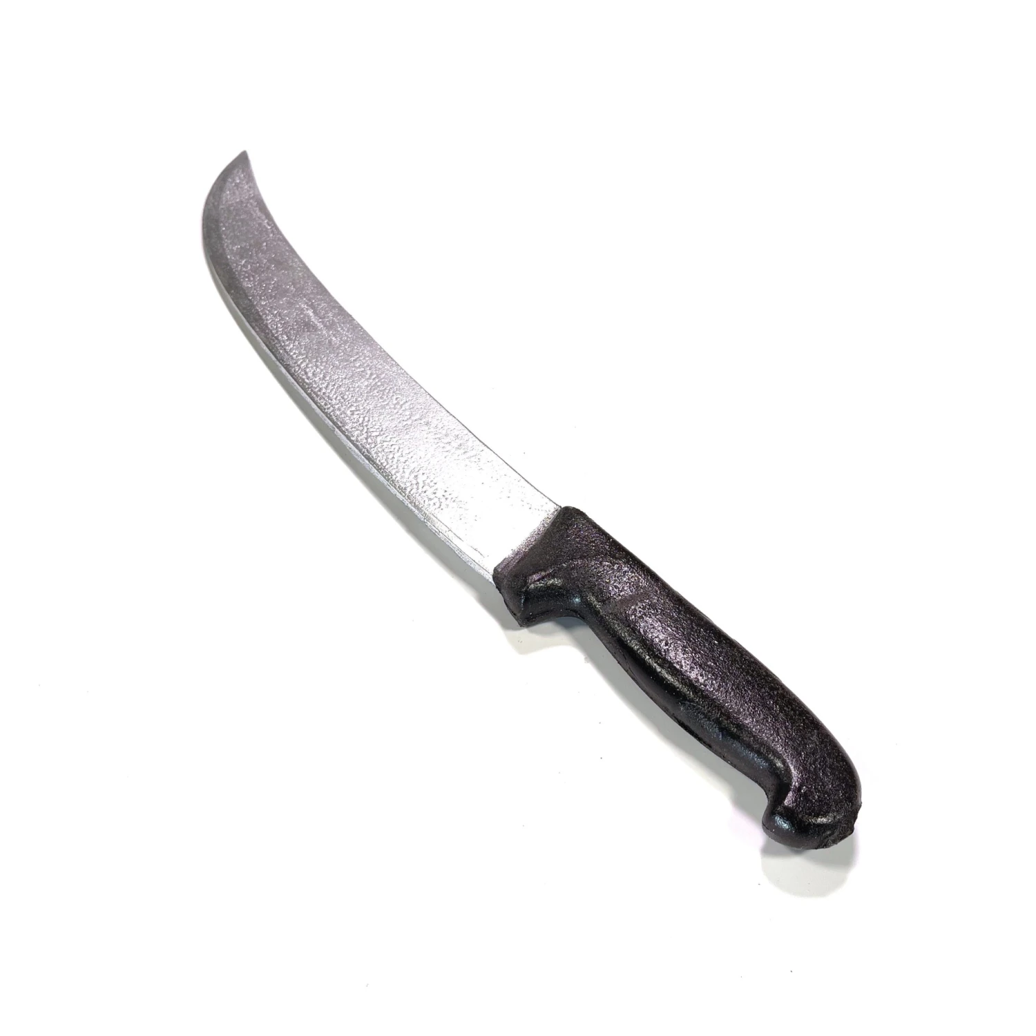 The Scimitar is a type of butcher’s knife that has a long, thin blade that curves upwards to the tip, similar to the Middle Eastern sword of the same name. This style of knife is mainly used for slicing meat into smaller cuts and trimming off undesirable parts. In the butcher’s arsenal it is an excellent tool for all of the meat cutting tasks! Also for other meat cutting tasks. 😉