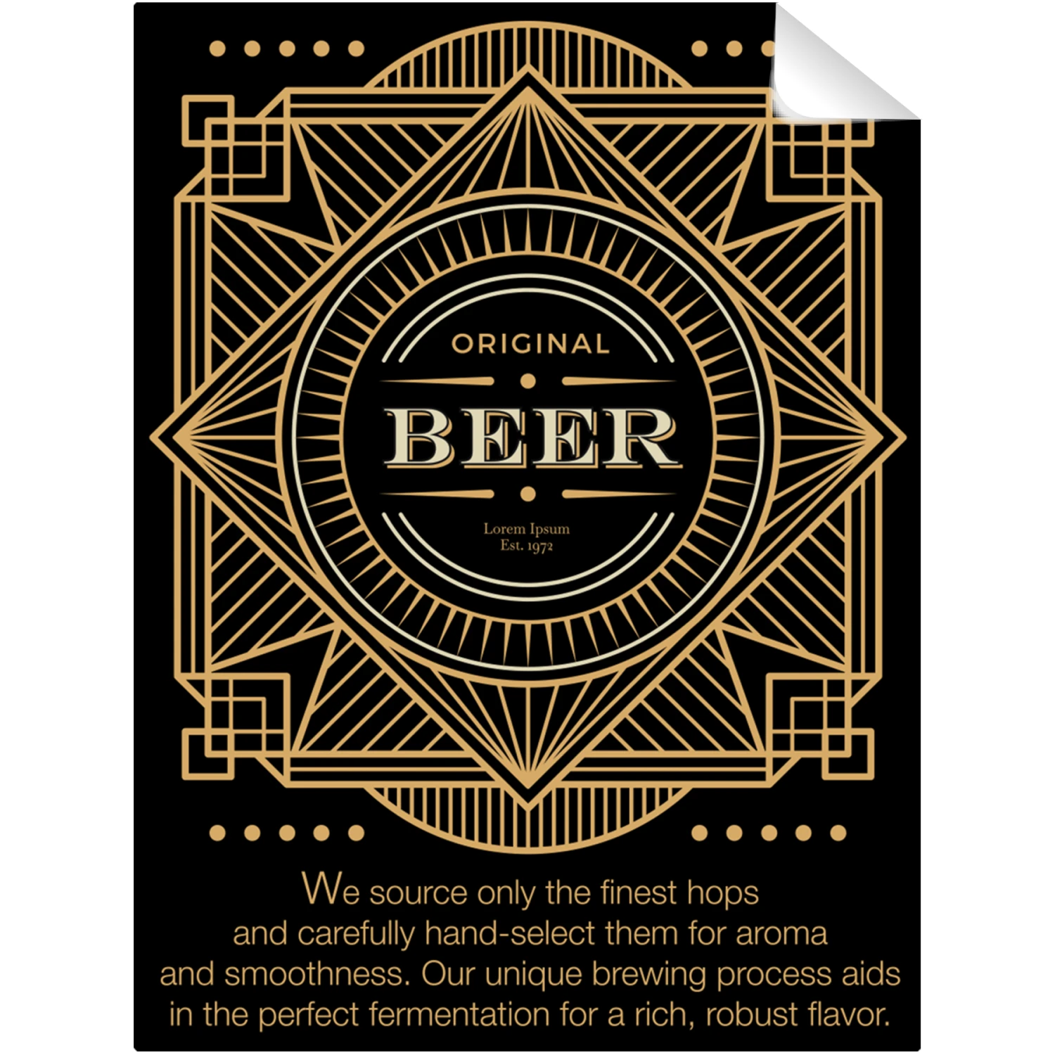 “Beer” generic styled bottle color label printed on self adhesive label stock. Use on our breakaway or break resistant bottles to add realism to your scene.