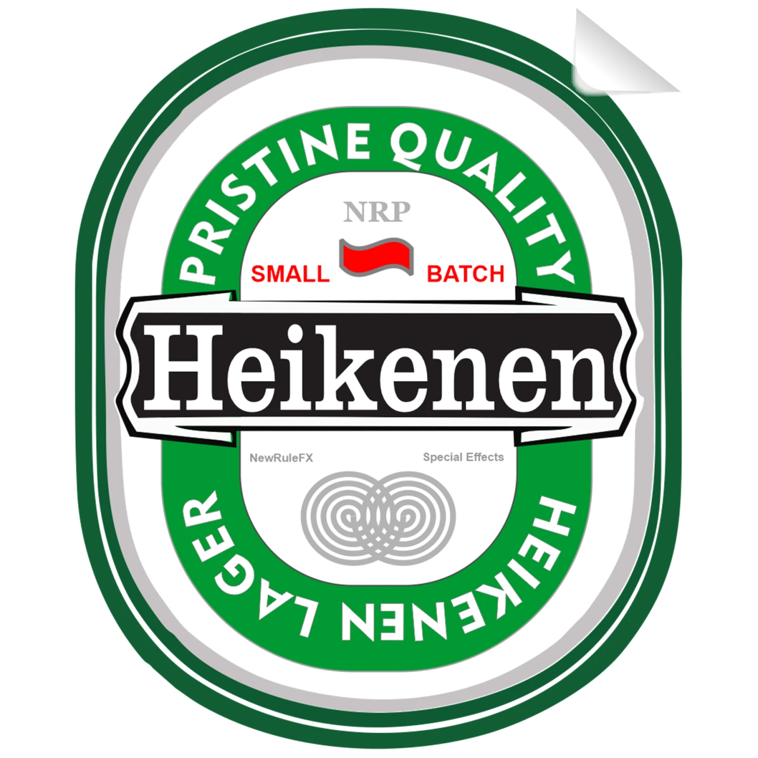“Heikenen” beer bottle color label printed on self adhesive label stock. Perfect for use on our breakaway bottles, this label will add an extra touch of realism to any scene!