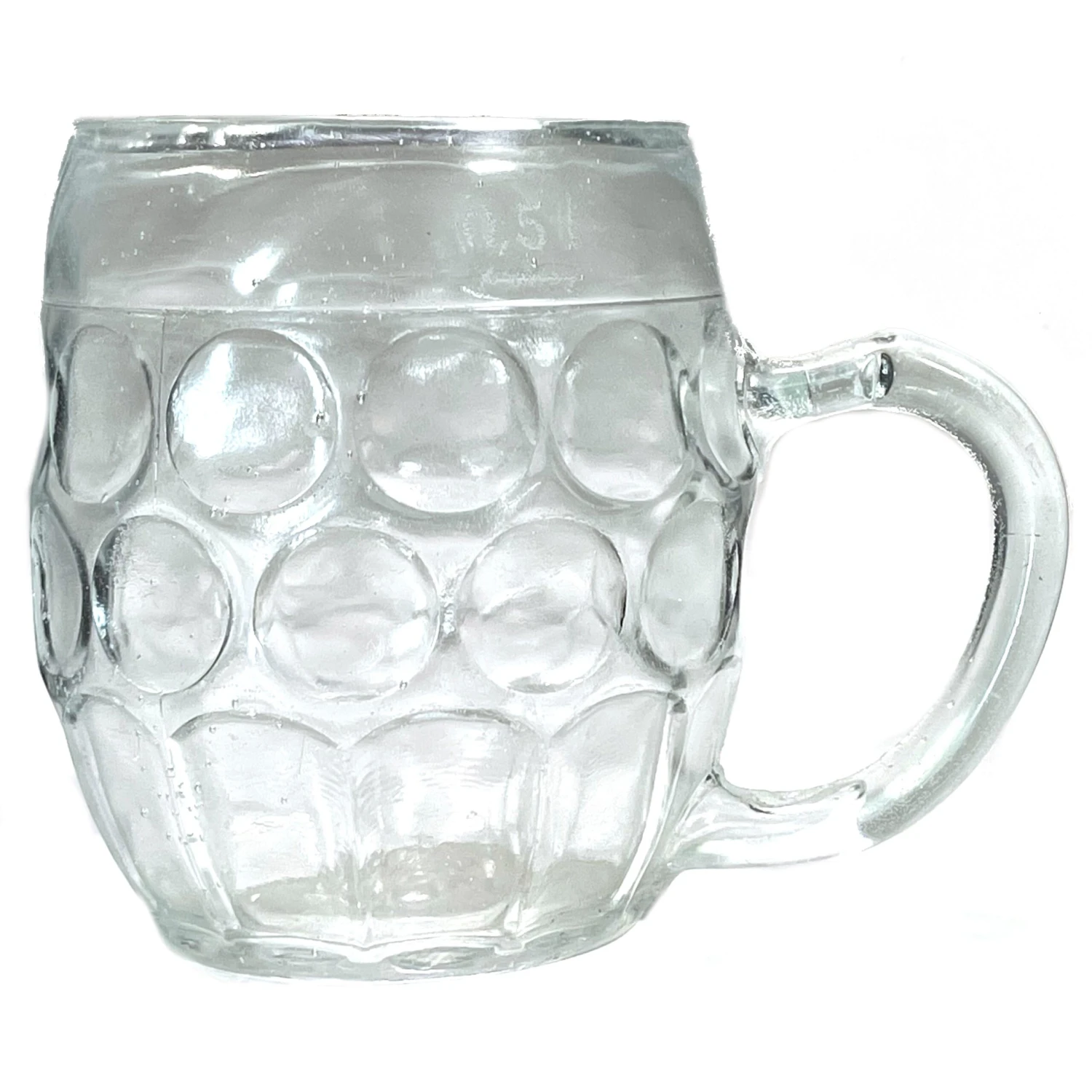 The dimpled stein beer mug is a symbol of the British pub. This classic glass tankard style has traditional distinctive dimples, that some may call a glass grenade. This breakaway Libbey Dimple Stein Beer Mug is precision-made and breaks easily upon impact. Actor Safe! Some breakaways are even capable of holding room temperature liquids! Individual results will vary.