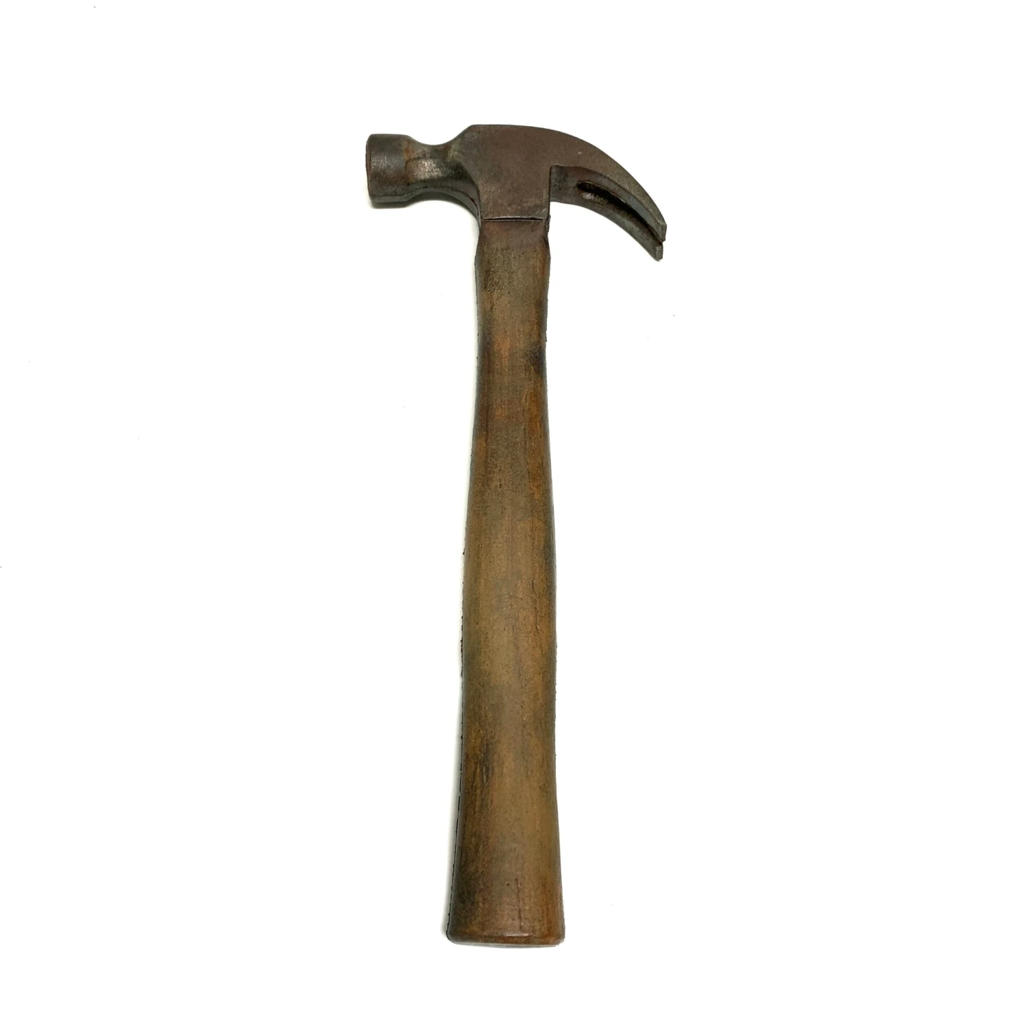 This is a handmade lightweight foam standard claw hammer prop. An expertly hand-finished prop, it features detailed wood grain on the handle and a simulated metal head. This foam prop features a rigid core construction to accommodate full use and action that allows for complete safety. The soft foam head allows for safe impact when used with actors. This hammer is designed for stage and screen use; employ it in combat scenes, funny gags, or in any situation where a real hammer would be too dangerous to use. Bonus Feature: You can hit someone on the head with this hammer without harm!