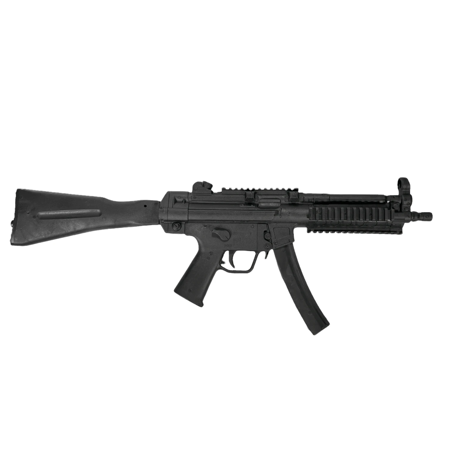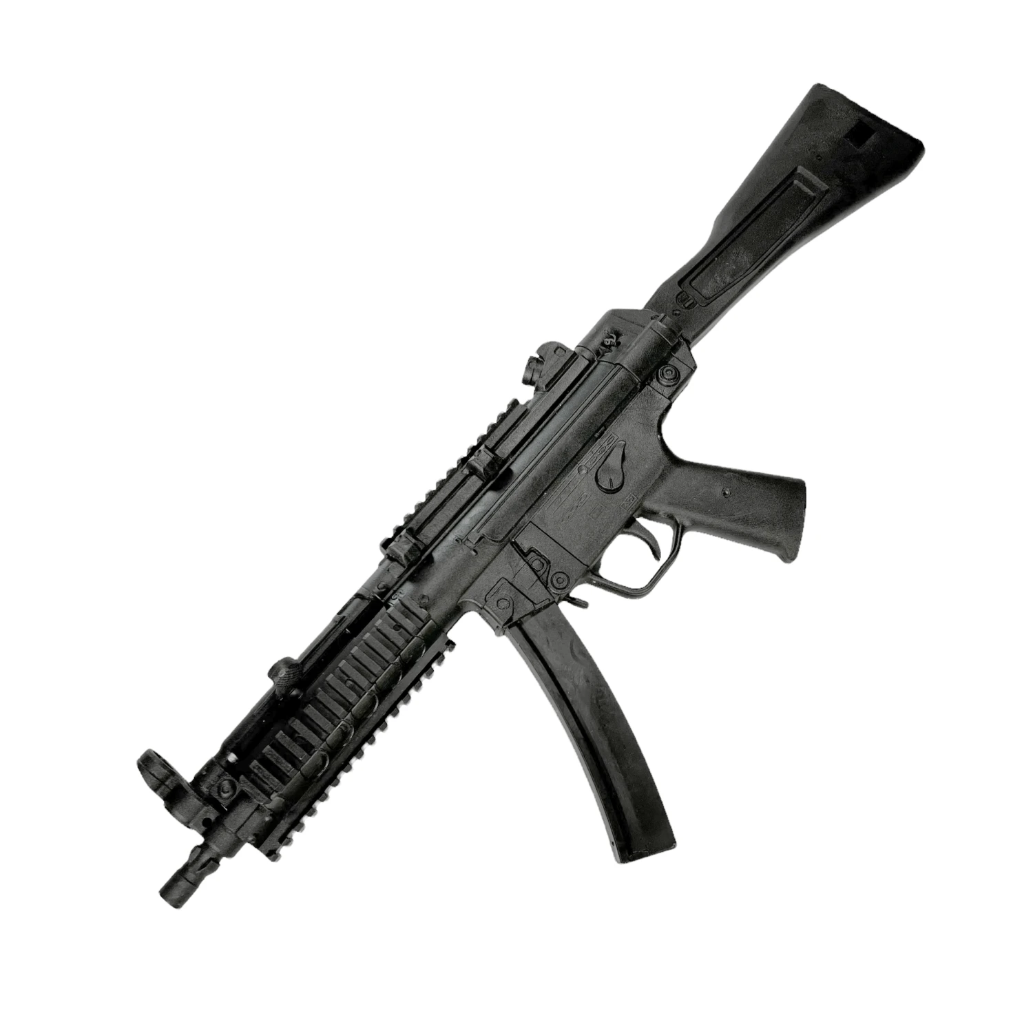 The Heckler & Koch MP5 Semi-Automatic prop was molded from a real MP5 style rifle and the hard poly plastic replica boasts all of the details of the real thing! Perfect for use when a real gun poses too much danger. Comes with a strap.