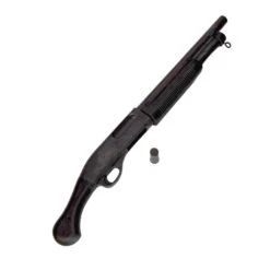 Solid Plastic Resin Sawed Off Shotgun, forearm slides back and forth. Each one comes with one solid simulated shell.