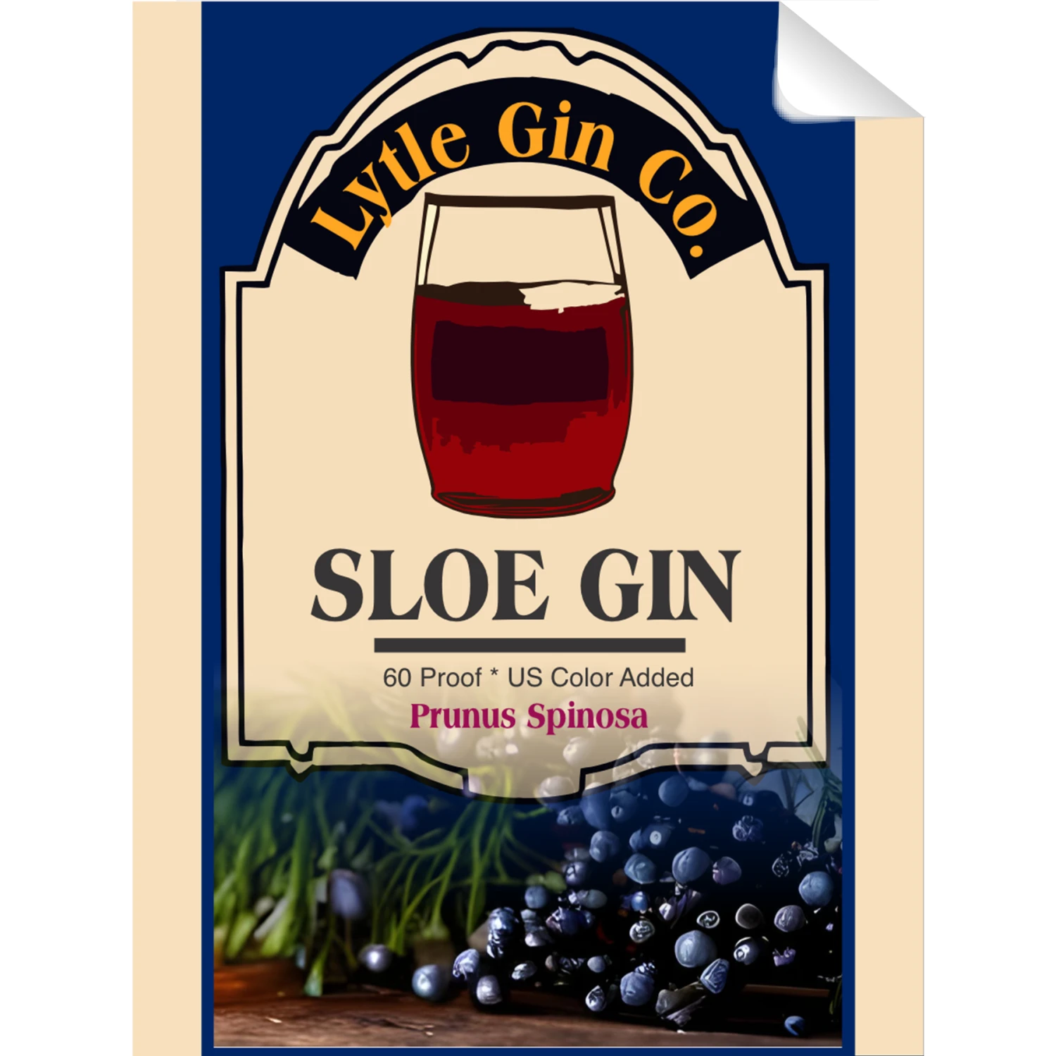 “Sloe Gin” bottle color label printed on self-adhesive label stock. Use our breakaway or break-resistant bottles to add realism to your scene.Â