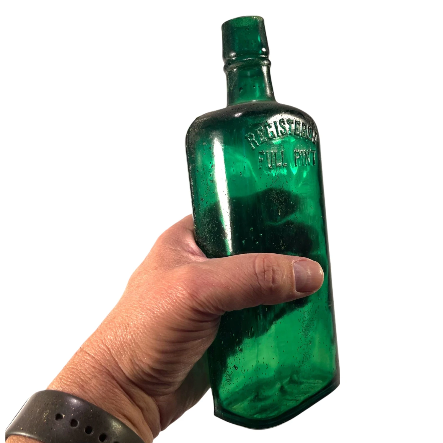 This breakaway Full Pint Bottle is a true antique replica, created from a real 100+ year old bottle. Raised “Registered Full Pint” lettering on the bottle shoulder adds to the authentic look of this piece.