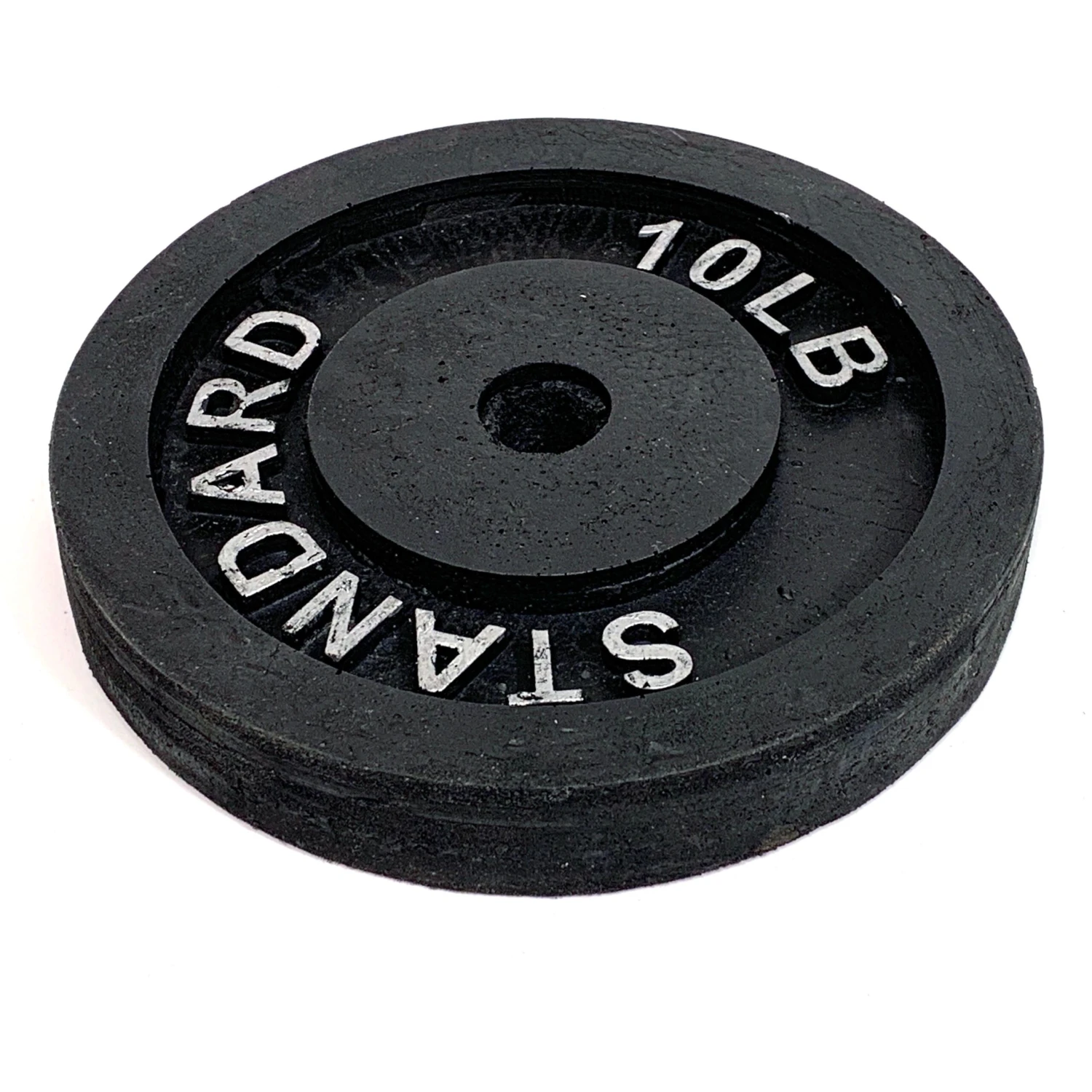 Black semigloss finish with silver and rust “aged” blemishes for realism and silver highlighted ” 10lb BFCU” raised lettering on one side. The other side is smooth.