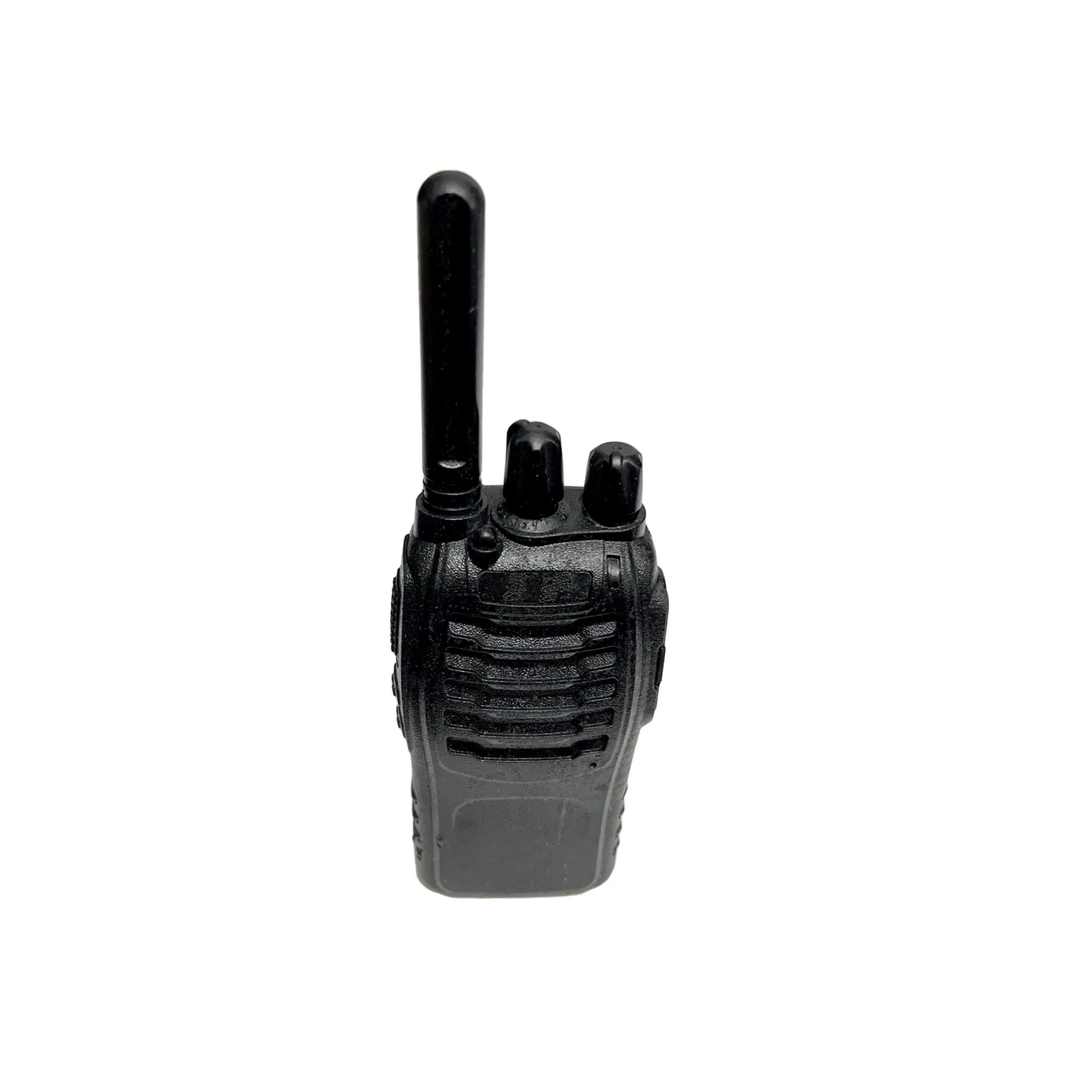Solid Foam Rubber with flexible antenna walkie talkie prop. Our walkie talkies are expertly crafted by hand, with delicate detail to mimic the look of a real two-way radio. Very durable material. Sold as a theatrical prop, does not function as a real walkie talkie.